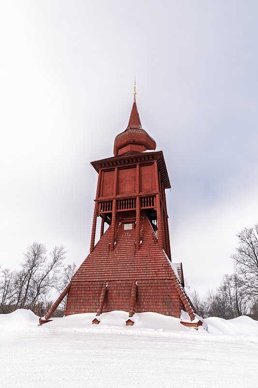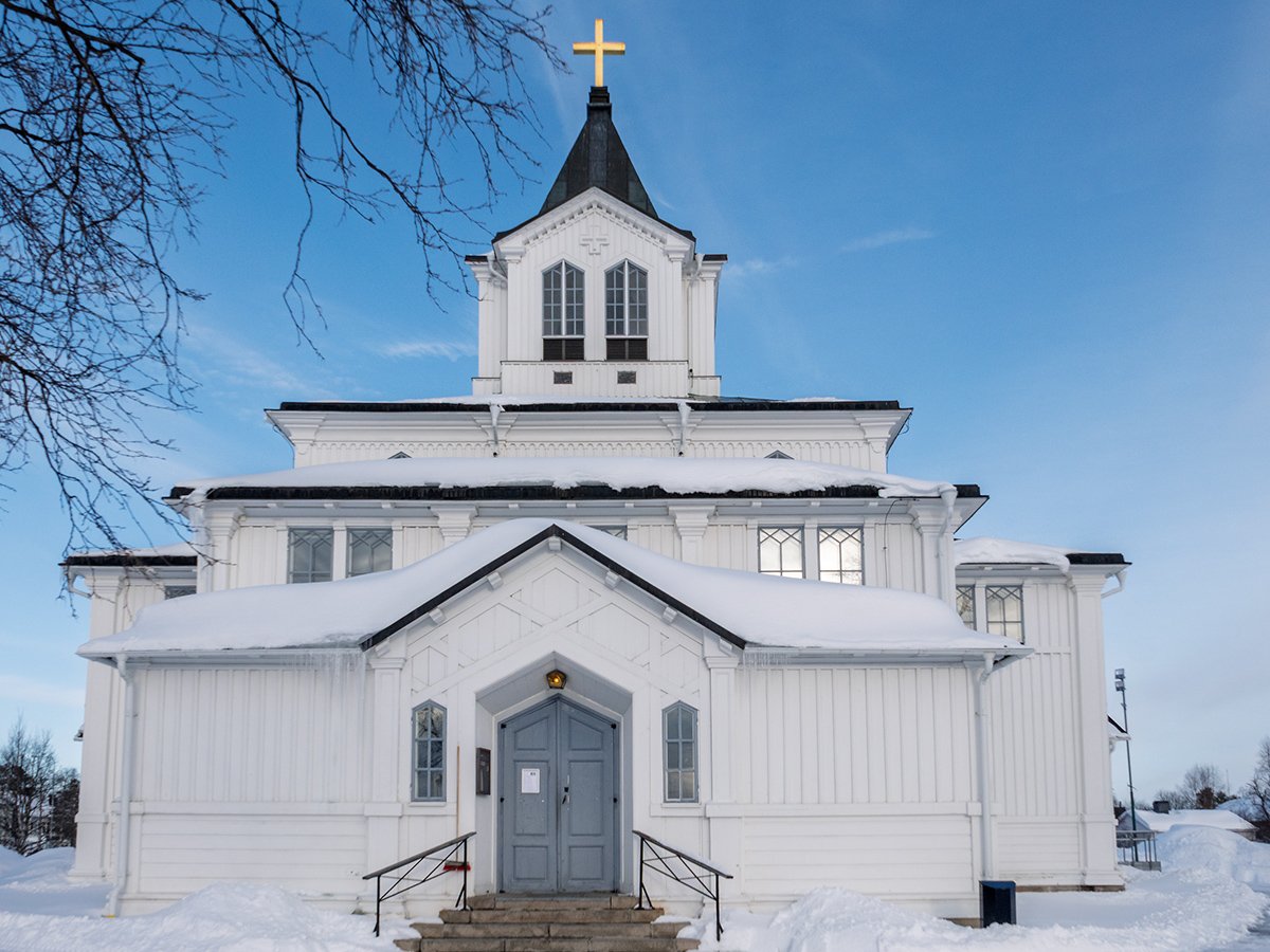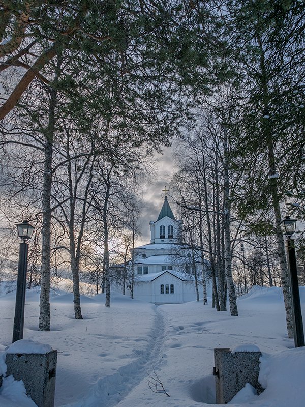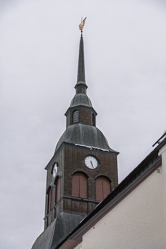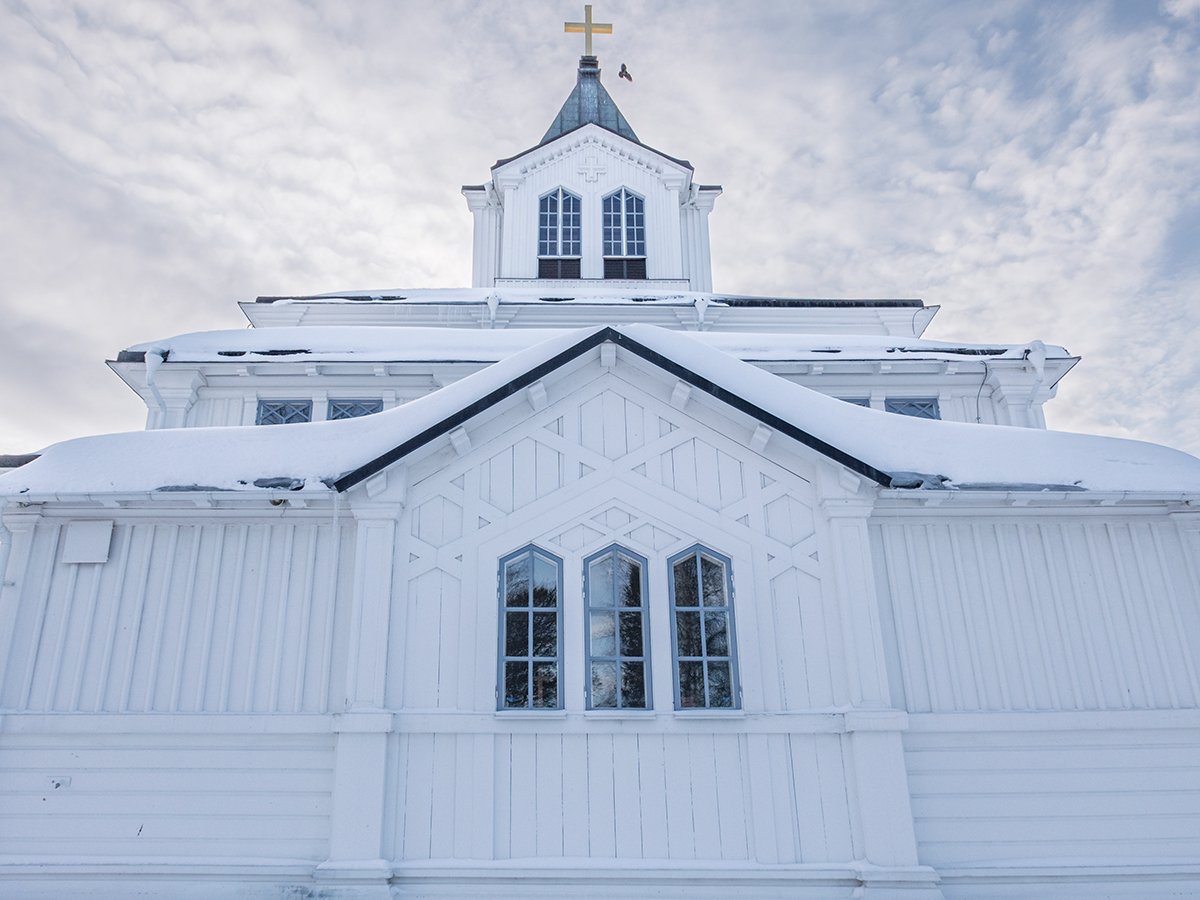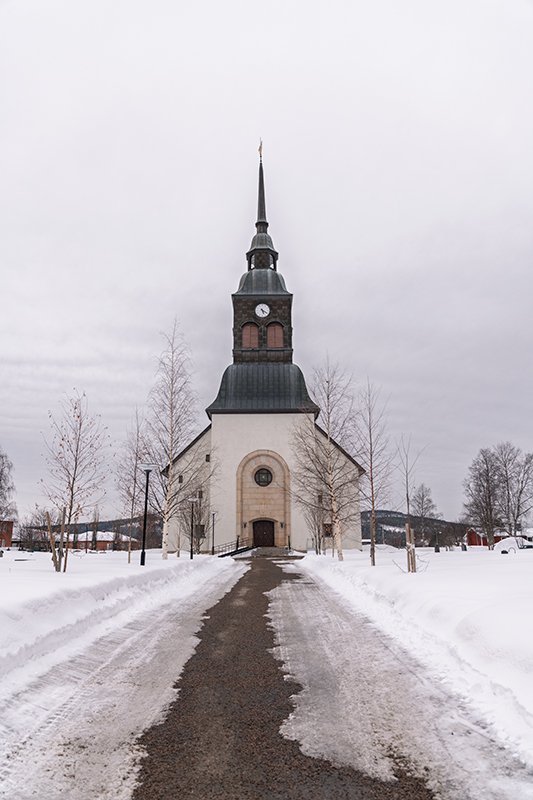 Y justo antes de finalizar el viaje con una tormenta de nieve apoteósica, pasamos por Överkalix y nos acercamos a ver su iglesia