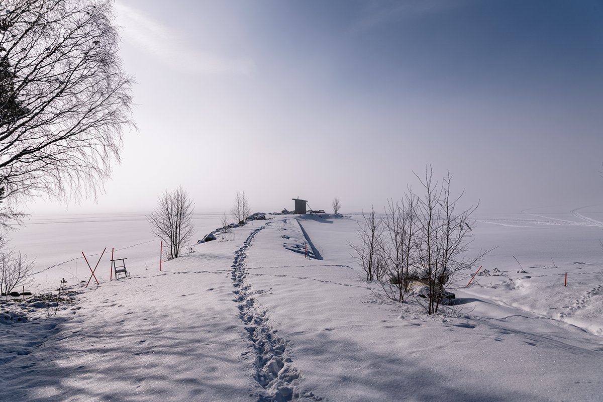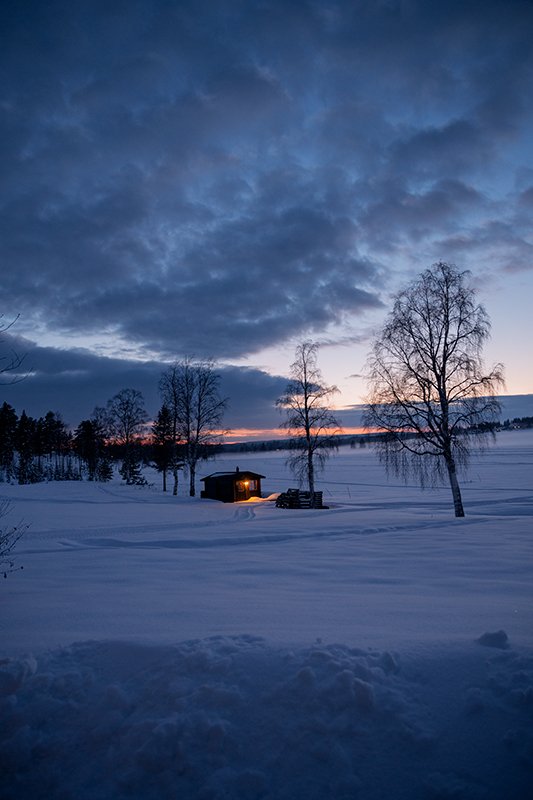 Ese mismo día nos fuimos a la playa de Piteå que, como es de suponer estaba helada y, donde lo curioso (o fascinante) es que al final del camino hay una sauna.